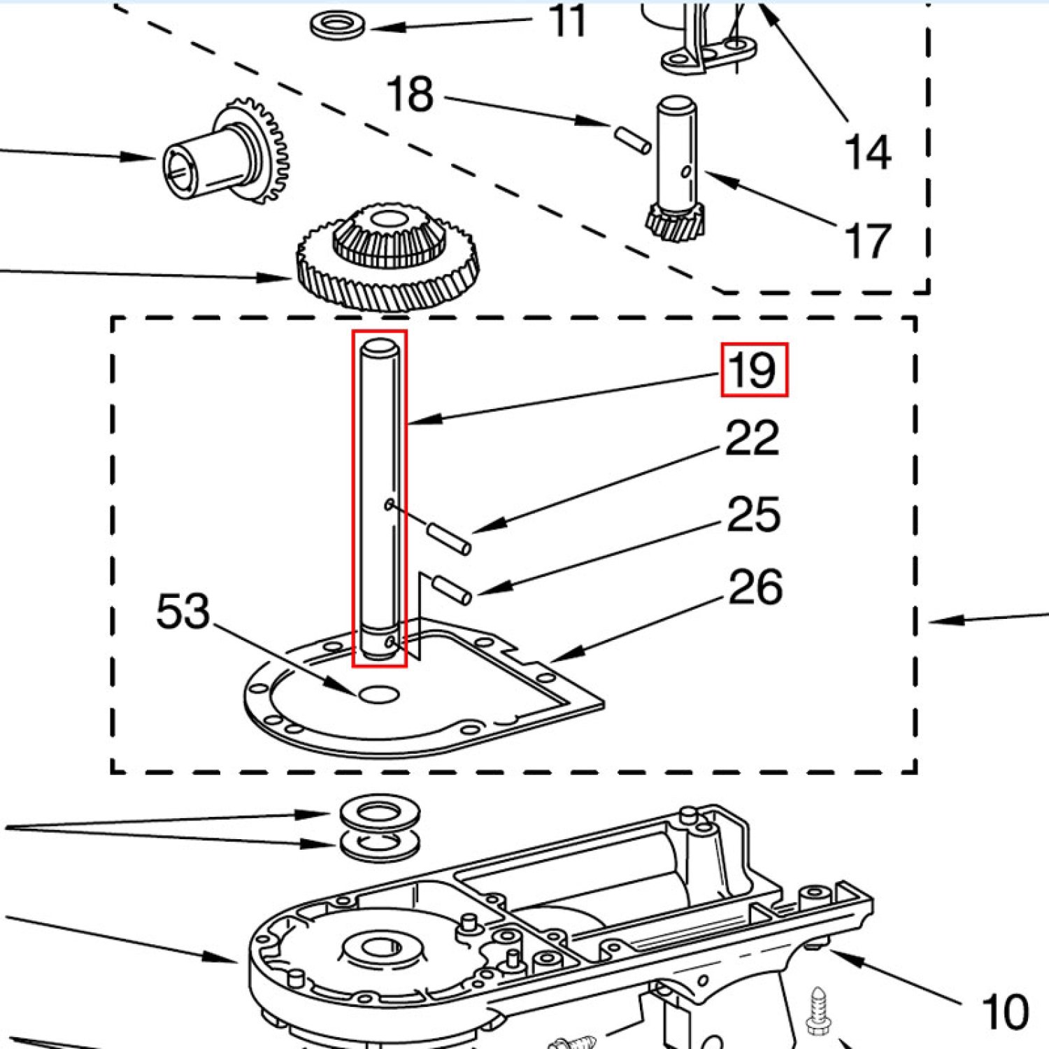 Der Center Shaft Nr. 19 ist die tragende Zentralwelle im Getriebebereich Ihrer KitchenAid-Küchenmaschine.