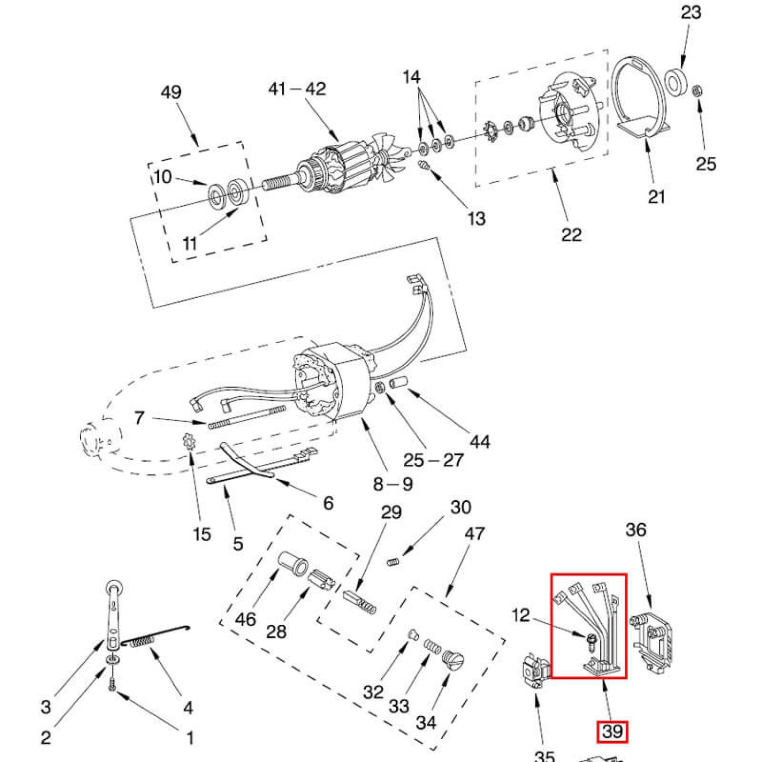 Dieses kleine, aber entscheidende Bauteil ist in der Explosionszeichnung als Position Nr. 39 geführt und übernimmt die elektronische Drehzahlregelung des Motors.